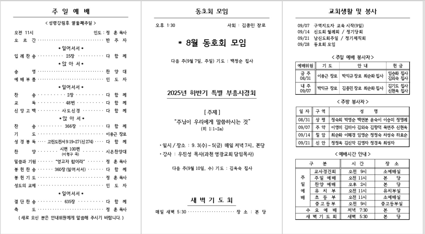 2025³â 8¿ù 31ÀÏ(¼º·É°¸²ÈÄ ¿µÑ°ÁÖÀÏ)