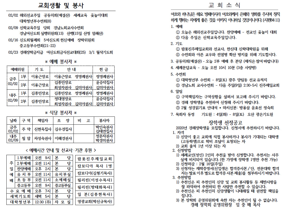 2020³â 02¿ù 09ÀÏ (½ÅÇб³À°ÁÖÀÏ) ÁÖº¸