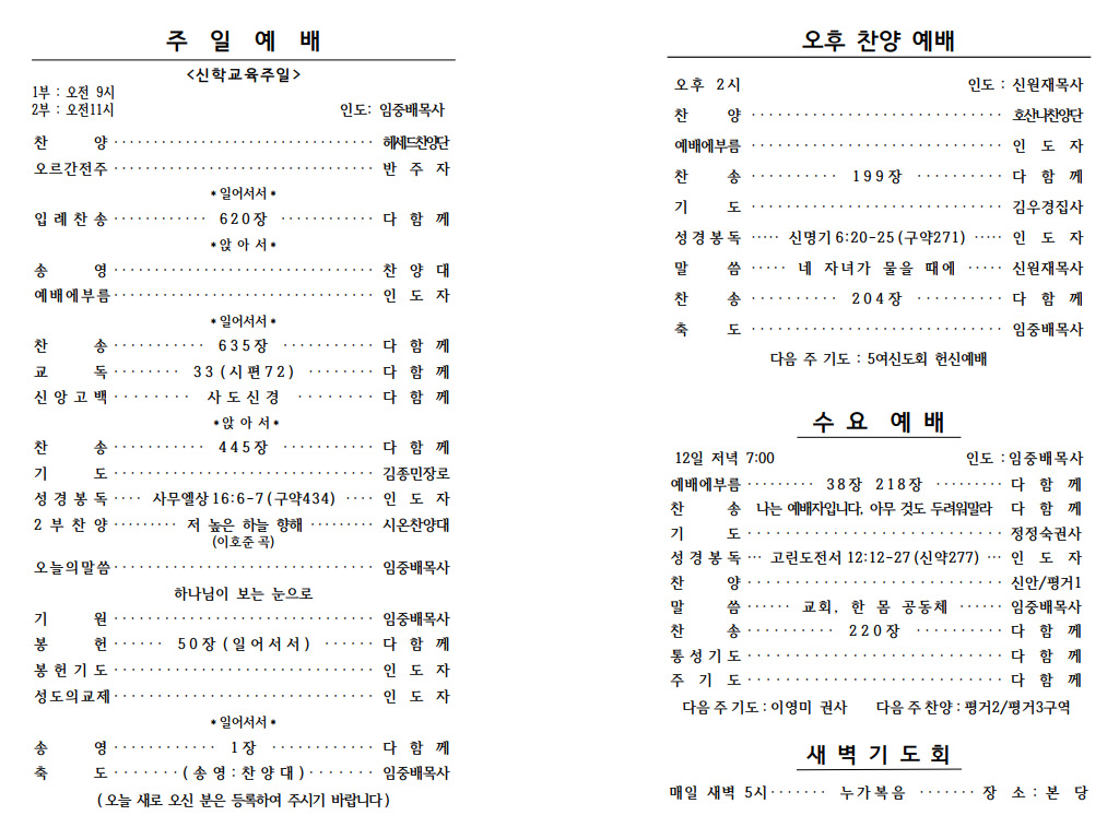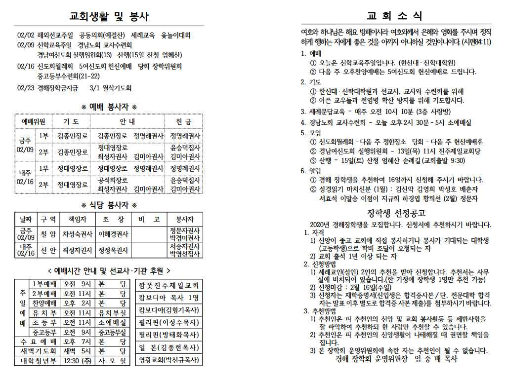2020³â 02¿ù 09ÀÏ (½ÅÇб³À°ÁÖÀÏ) ÁÖº¸