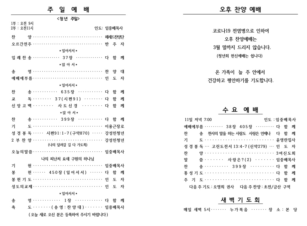 2020³â 02¿ù 09ÀÏ (½ÅÇб³À°ÁÖÀÏ) ÁÖº¸