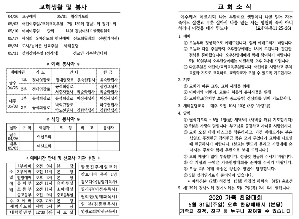 2020³â 05¿ù 03ÀÏ (¾î¸°ÀÌ/±³È¸±³À°ÁÖÀÏ) ÁÖº¸