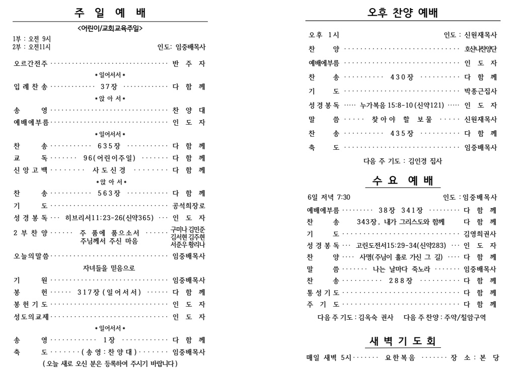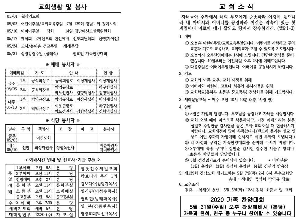 2020³â 05¿ù 03ÀÏ (¾î¸°ÀÌ/±³È¸±³À°ÁÖÀÏ) ÁÖº¸