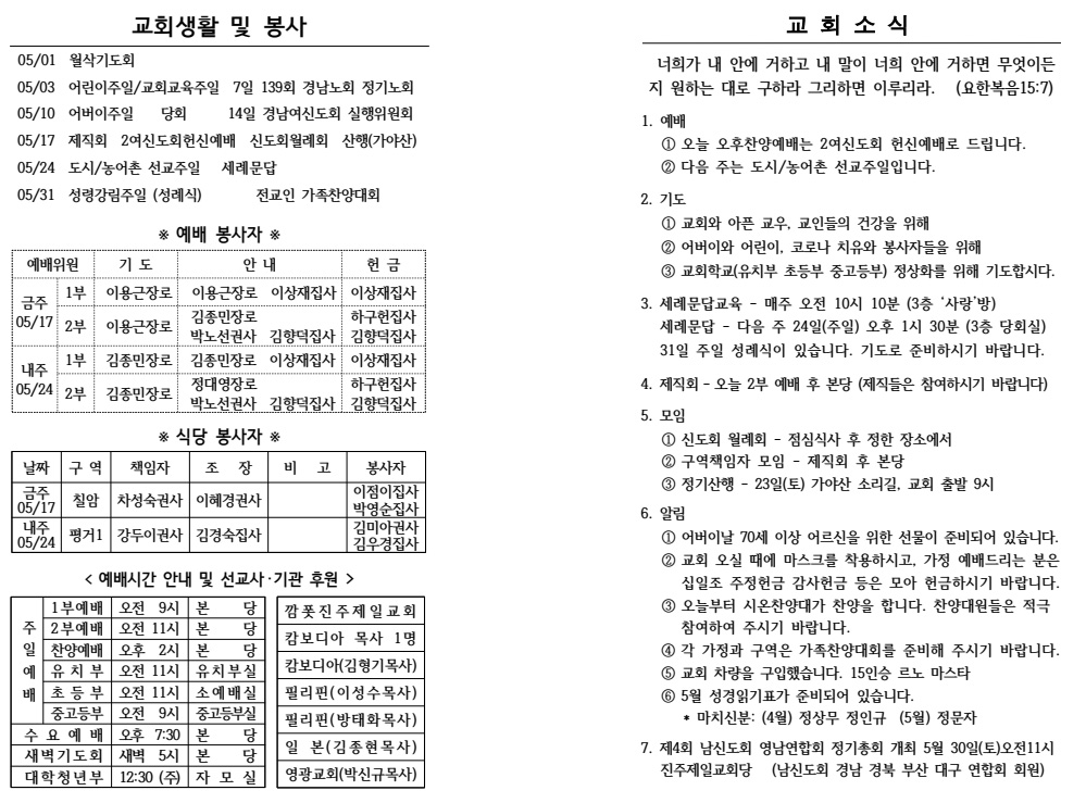 2020³â 05¿ù 03ÀÏ (¾î¸°ÀÌ/±³È¸±³À°ÁÖÀÏ) ÁÖº¸