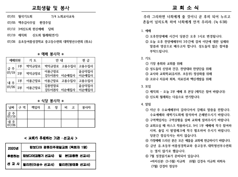 2020³â 07¿ù 05ÀÏ (¸ÆÃß°¨»çÁÖÀÏ) ÁÖº¸