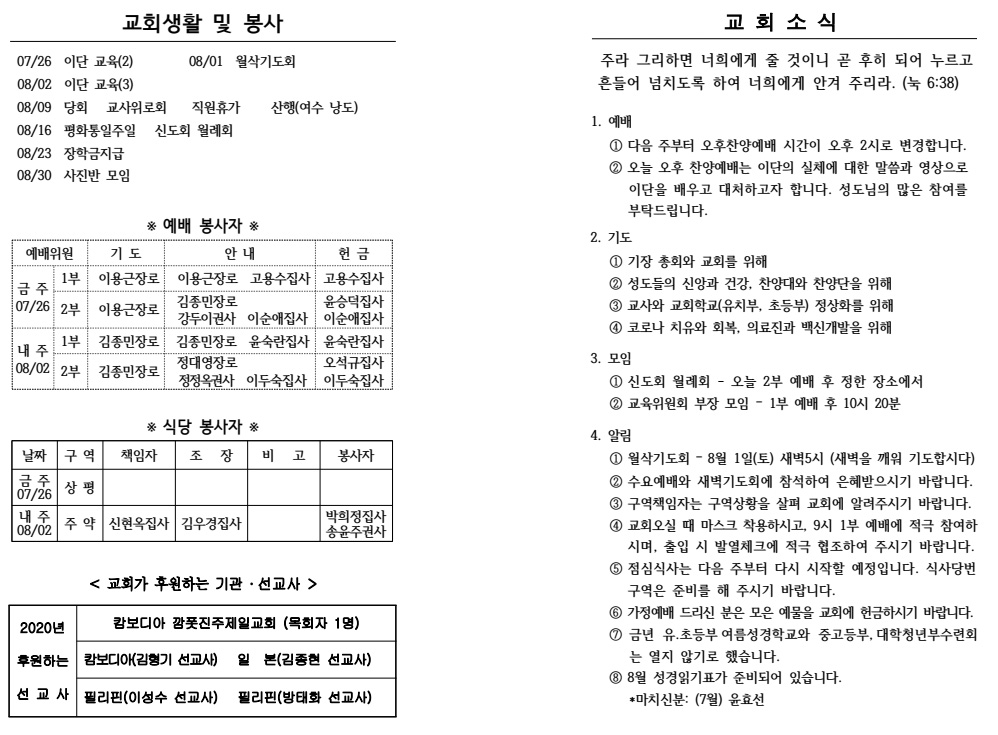 2020³â 07¿ù 05ÀÏ (¸ÆÃß°¨»çÁÖÀÏ) ÁÖº¸