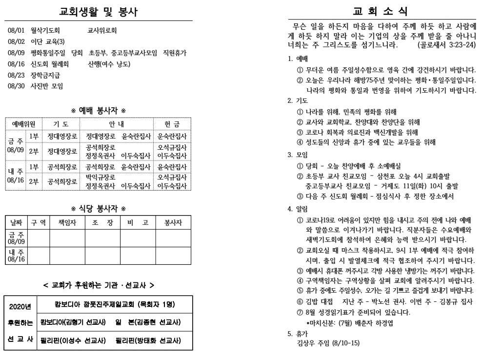 2020³â 08¿ù 09ÀÏ (ÆòÈÅëÀÏÁÖÀÏ) ÁÖº¸