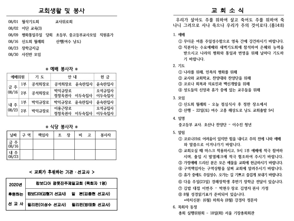 2020³â 08¿ù 09ÀÏ (ÆòÈÅëÀÏÁÖÀÏ) ÁÖº¸