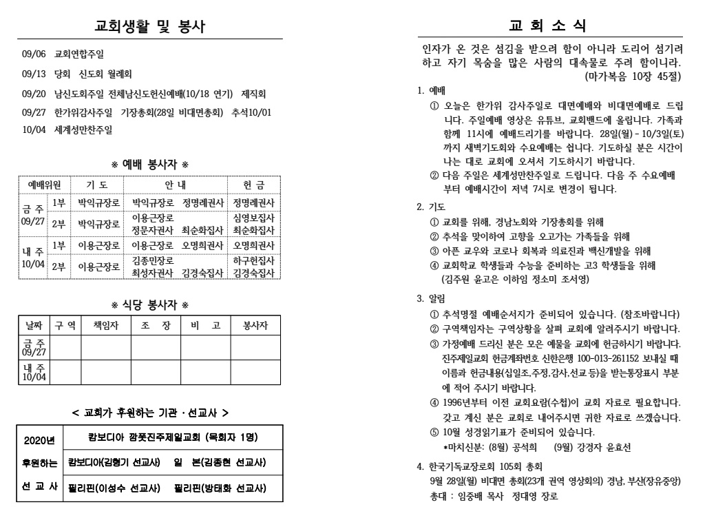 2020³â 09¿ù 06ÀÏ (âÁ¶Àý ù°ÁÖÀÏ) ÁÖº¸