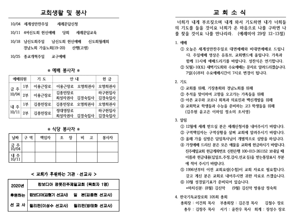 2020³â 09¿ù 06ÀÏ (âÁ¶Àý ù°ÁÖÀÏ) ÁÖº¸