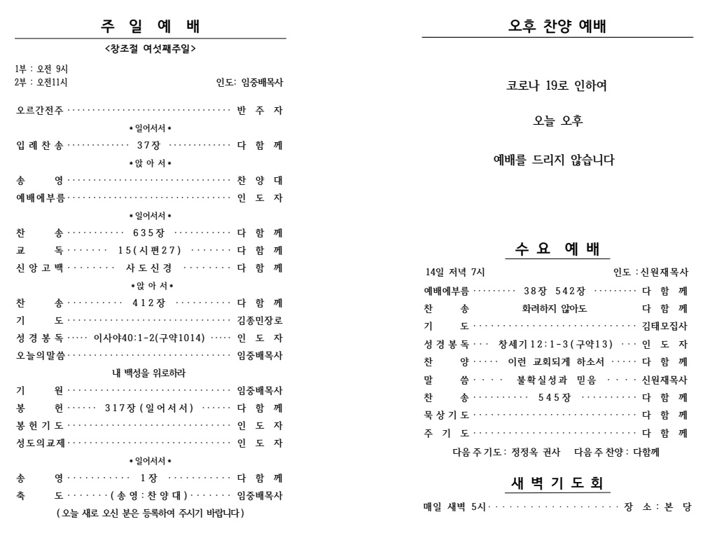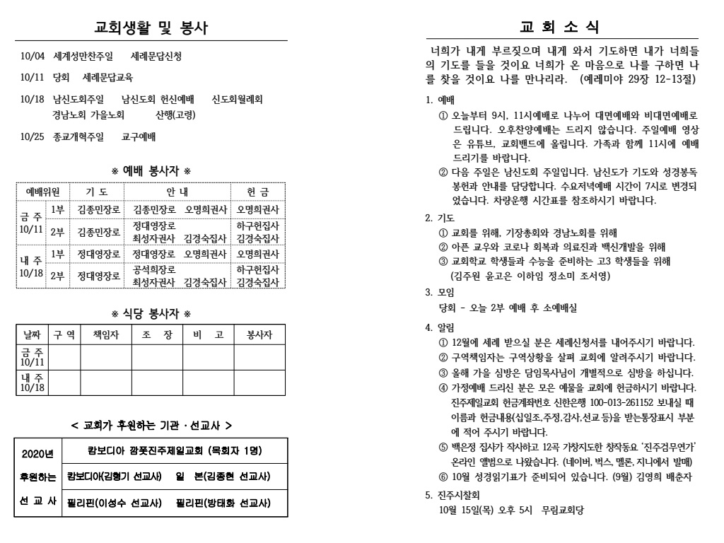 2020³â 10¿ù 25ÀÏ (Á¾±³°³ÇõÁÖÀÏ) ÁÖº¸