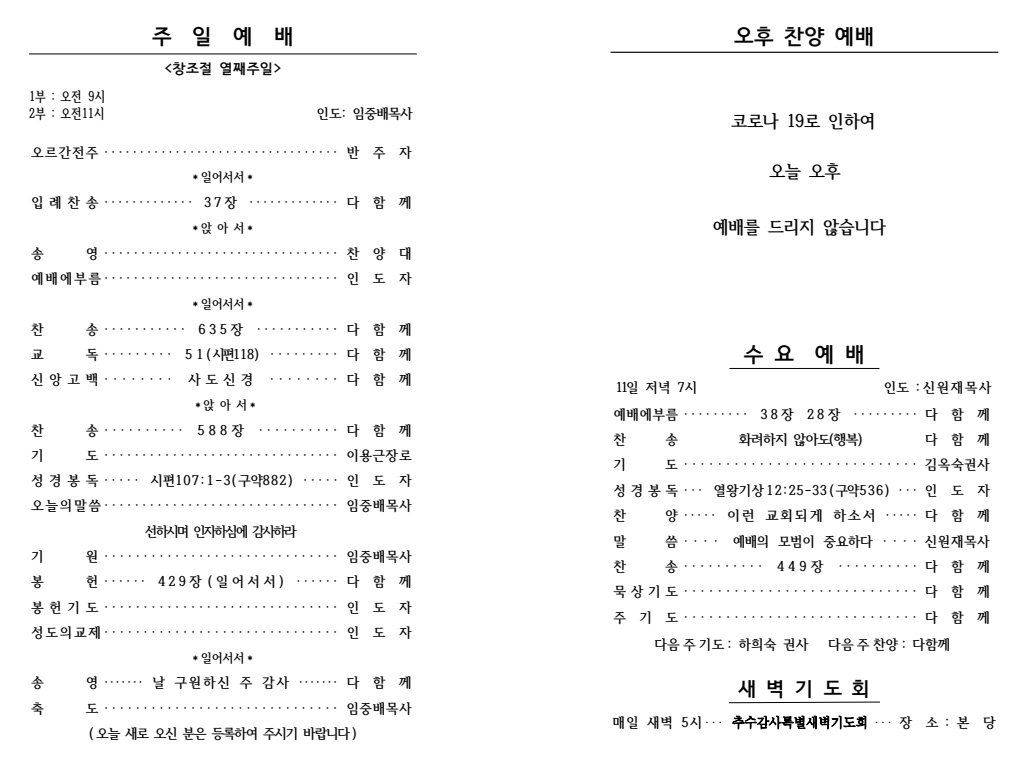 2020³â 10¿ù 25ÀÏ (Á¾±³°³ÇõÁÖÀÏ) ÁÖº¸