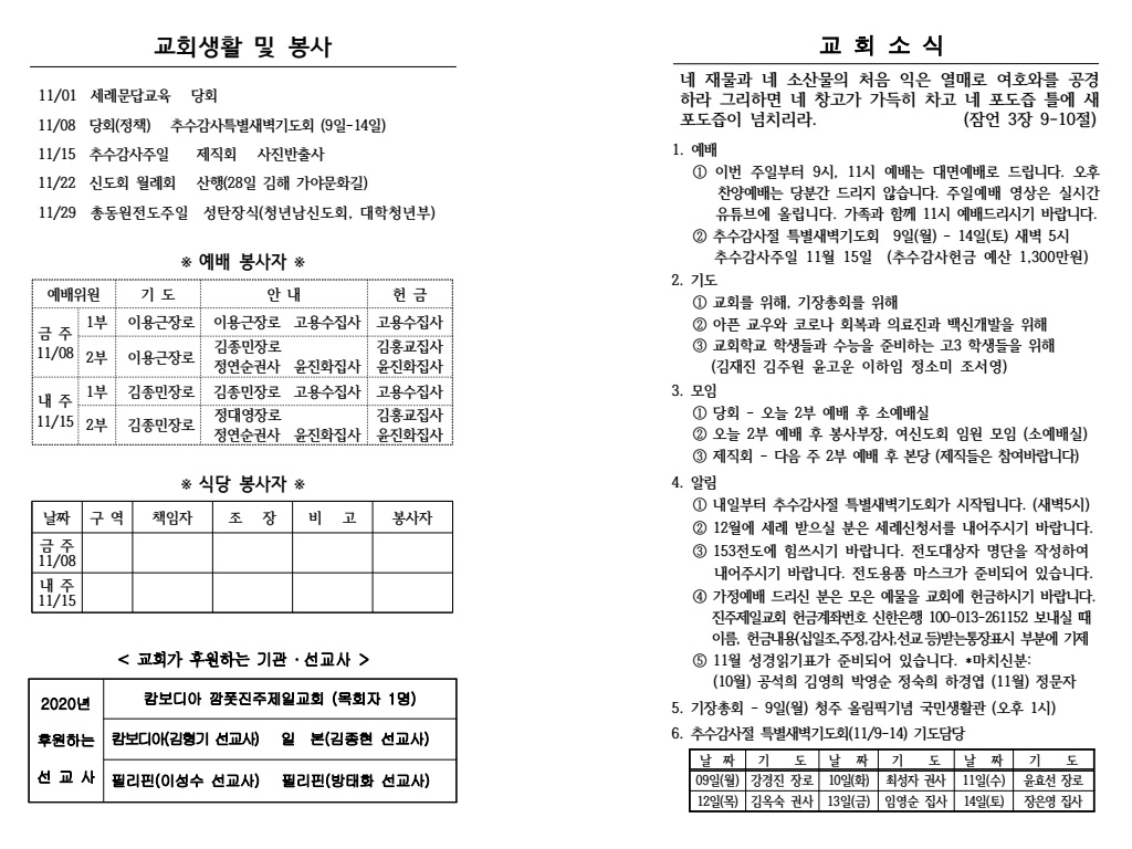 2020³â 11¿ù 01ÀÏ (âÁ¶Àý ¾ÆÈ©Â°ÁÖÀÏ) ÁÖº¸