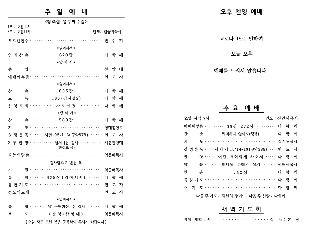 2020³â 10¿ù 25ÀÏ (Á¾±³°³ÇõÁÖÀÏ) ÁÖº¸