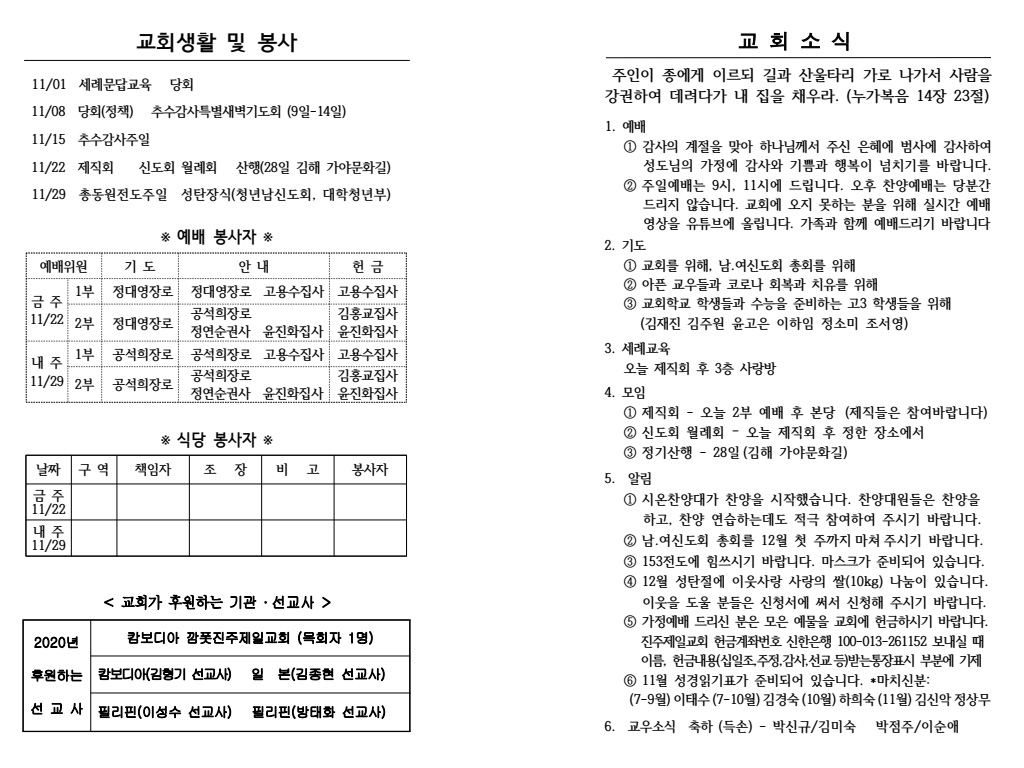 2020³â 11¿ù 22ÀÏ (âÁ¶Àý ¿µÎ°ÁÖÀÏ) ÁÖº¸