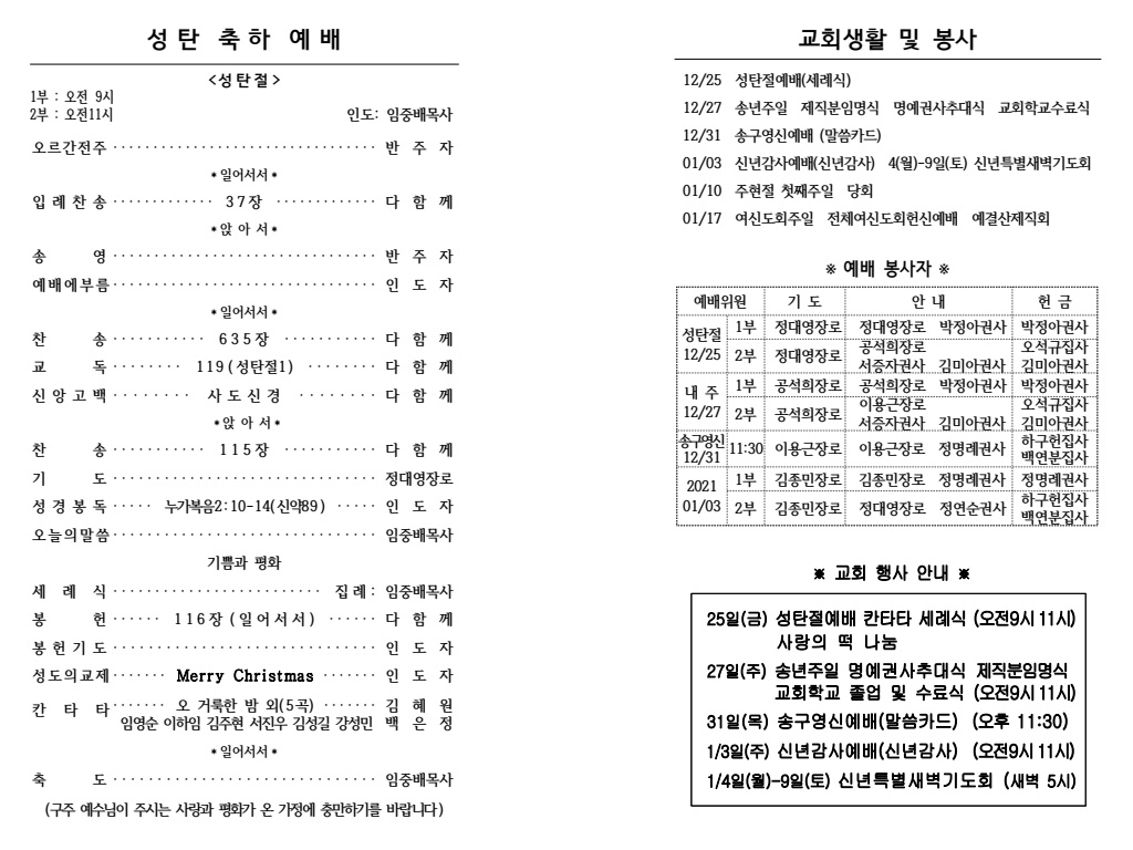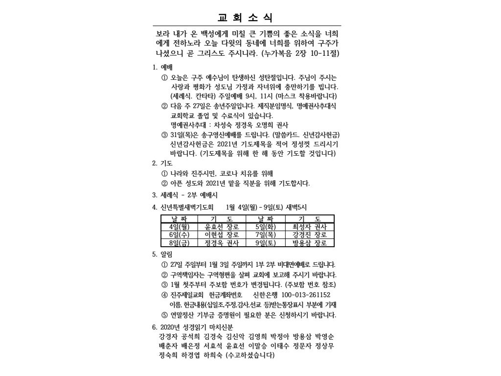 2020³â 12¿ù 25ÀÏ (¼ºÅºÀý) ÁÖº¸