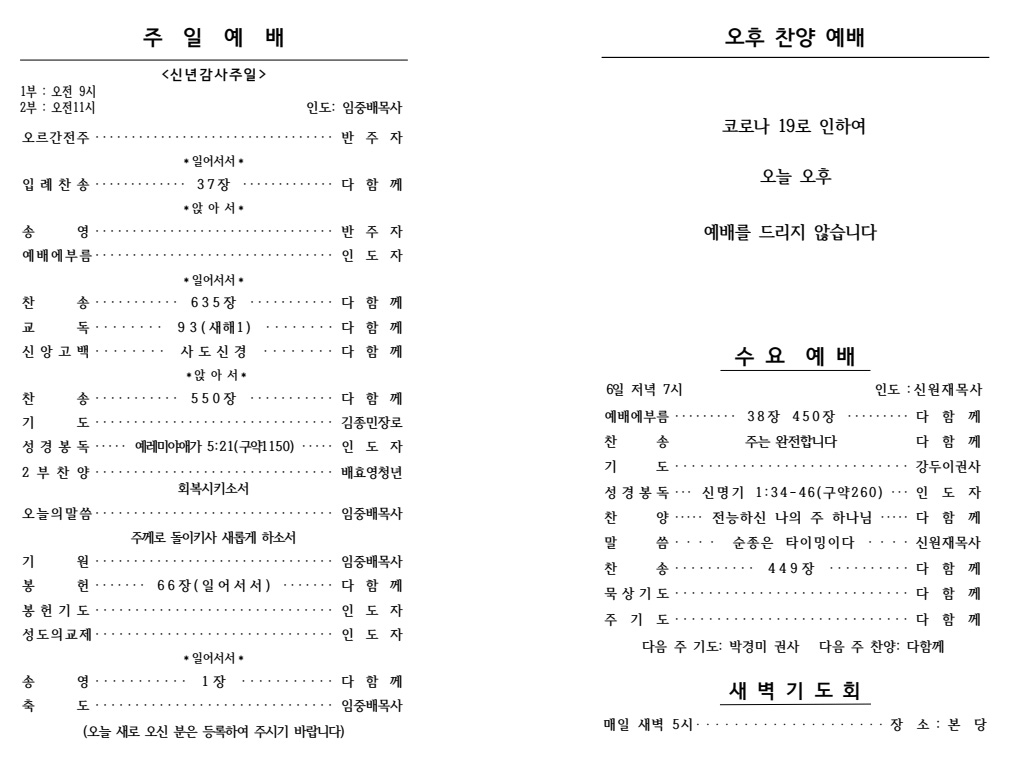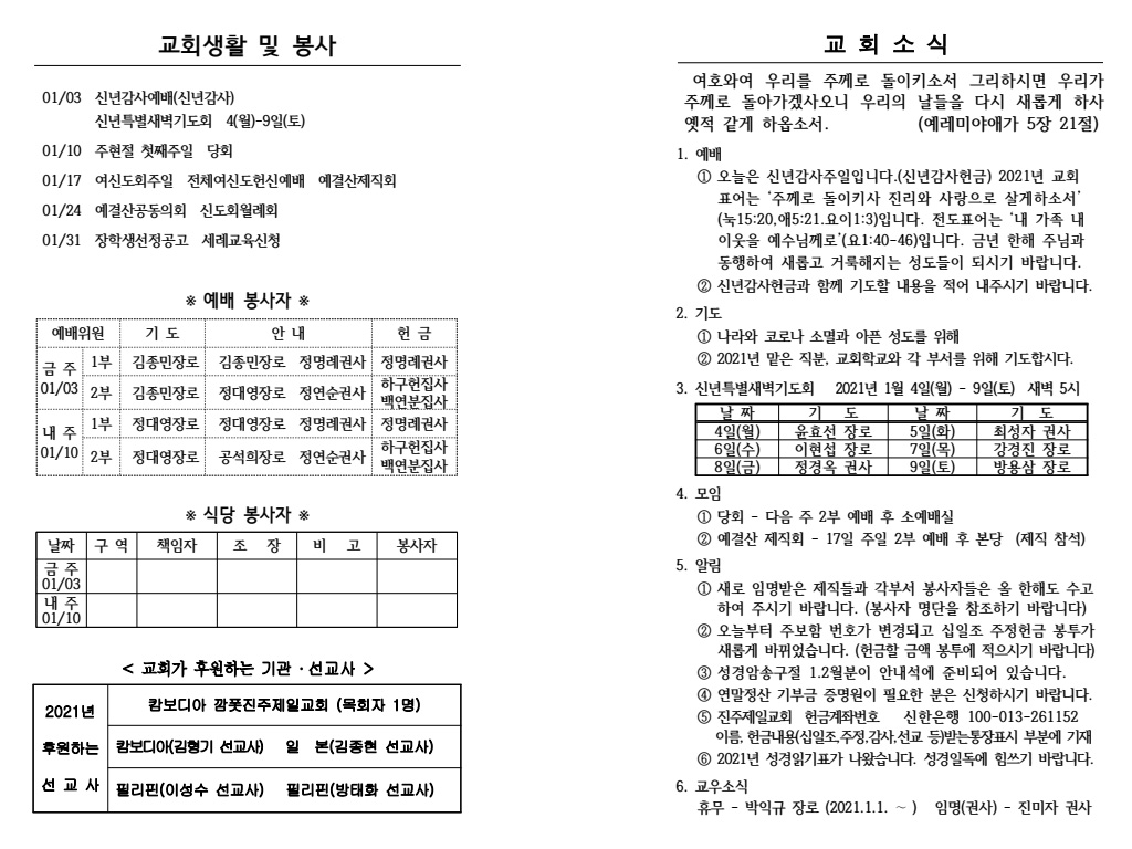 2021³â 01¿ù 17ÀÏ (¿©½ÅµµÈ¸ÁÖÀÏ) ÁÖº¸