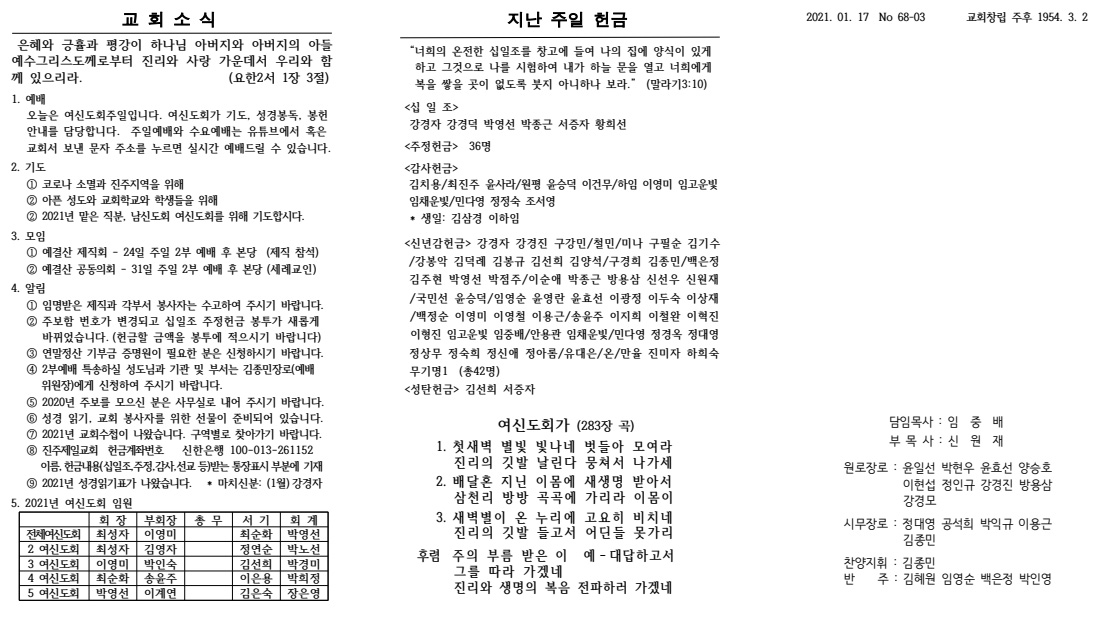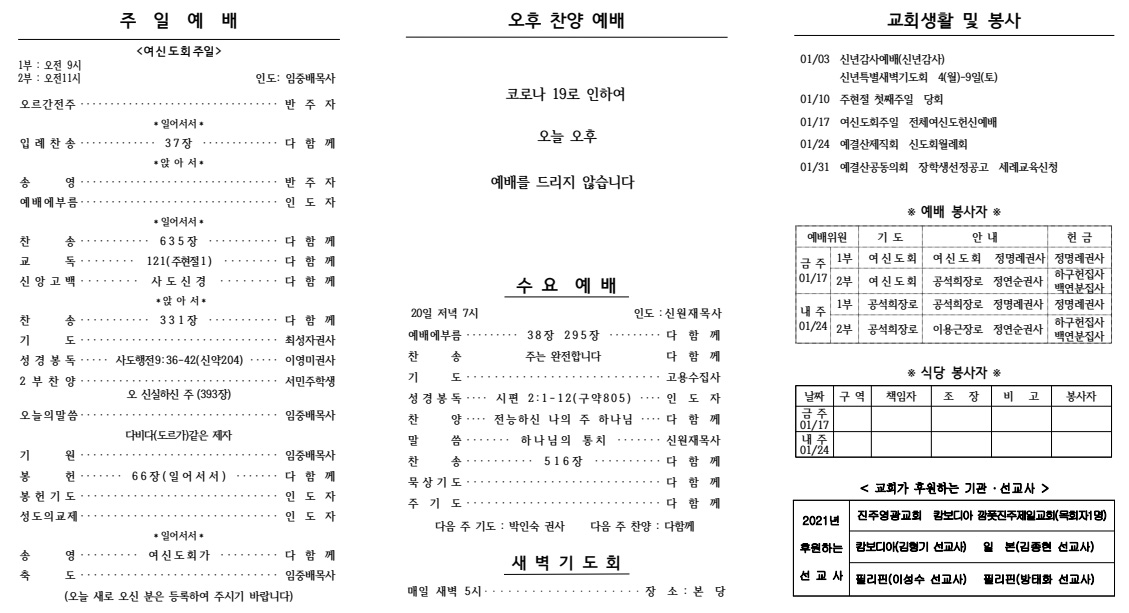 2021³â 01¿ù 17ÀÏ (¿©½ÅµµÈ¸ÁÖÀÏ) ÁÖº¸