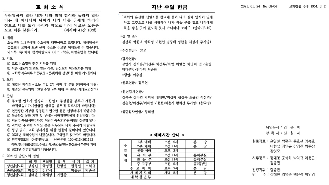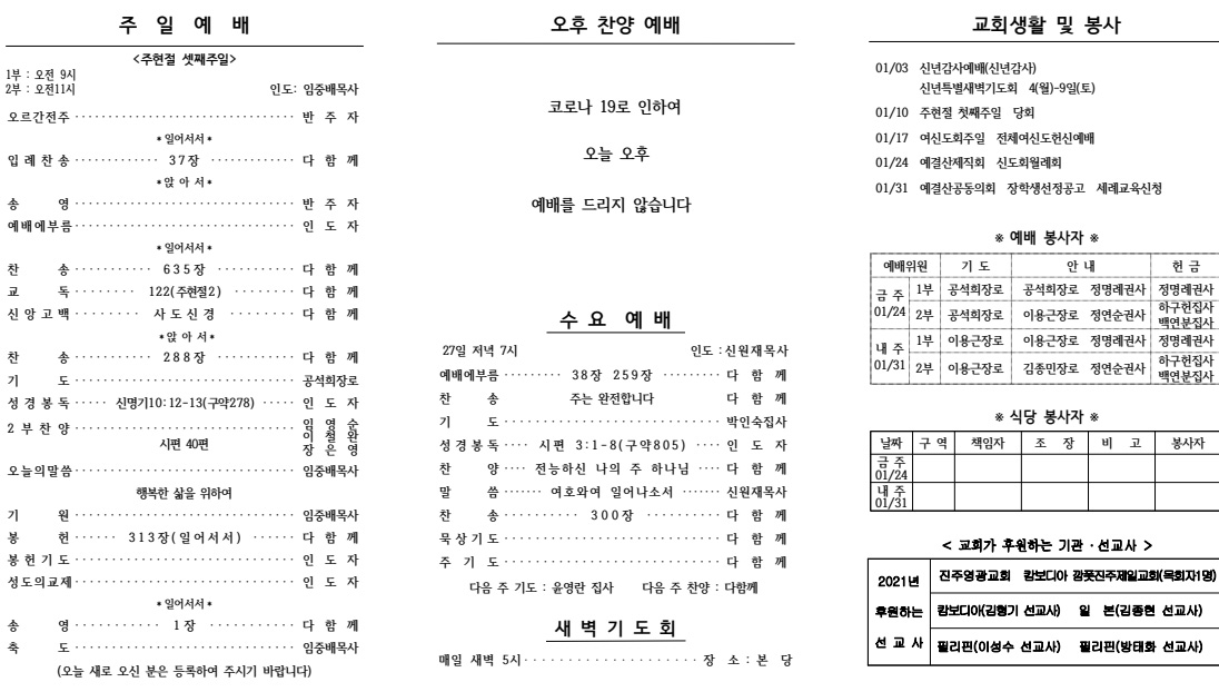 2021³â 01¿ù 17ÀÏ (¿©½ÅµµÈ¸ÁÖÀÏ) ÁÖº¸