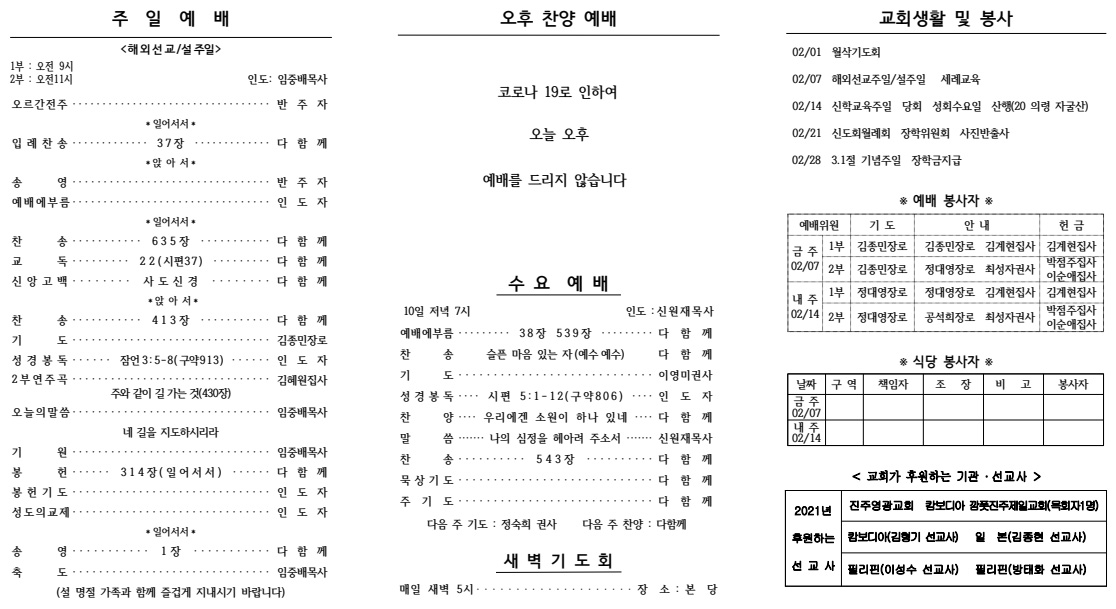 2021³â 01¿ù 10ÀÏ (ÁÖÇöÀý ù°ÁÖÀÏ) ÁÖº¸