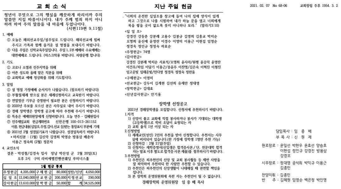 2021³â 01¿ù 17ÀÏ (¿©½ÅµµÈ¸ÁÖÀÏ) ÁÖº¸