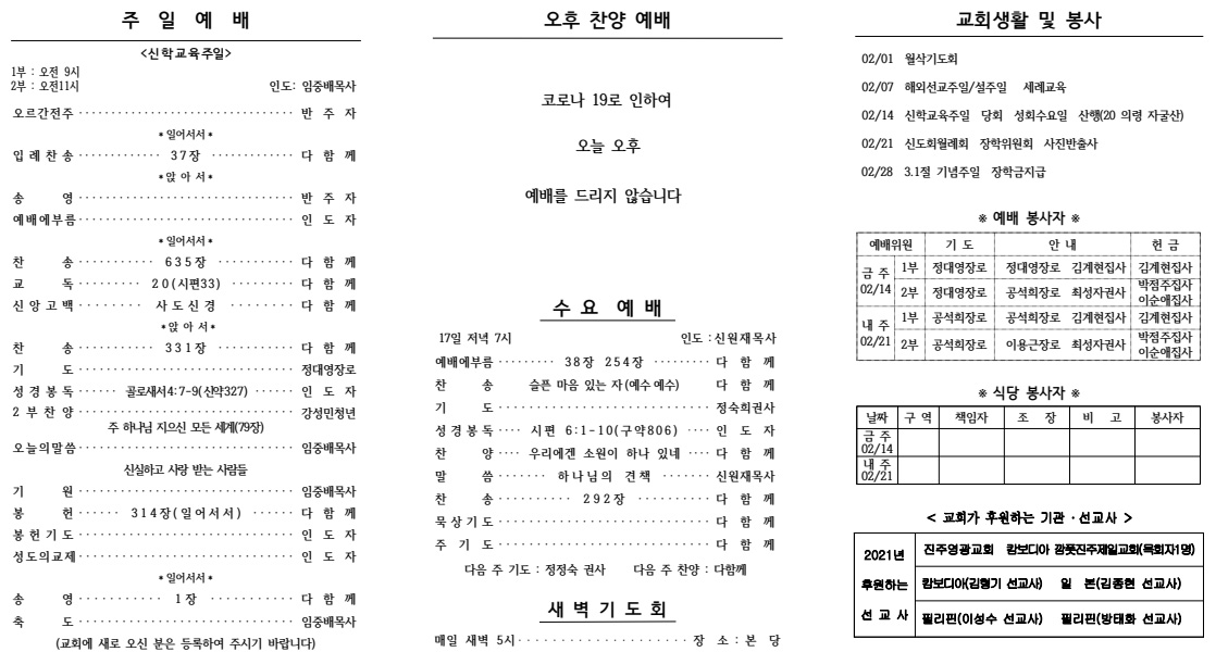2021³â 02¿ù 21ÀÏ (»ç¼øÀý ù°ÁÖÀÏ) ÁÖº¸