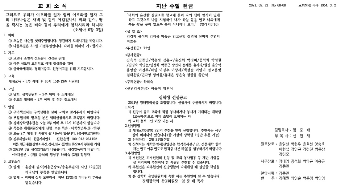2021³â 03¿ù 07ÀÏ (±³È¸Ã¢¸³±â³äÁÖÀÏ) ÁÖº¸