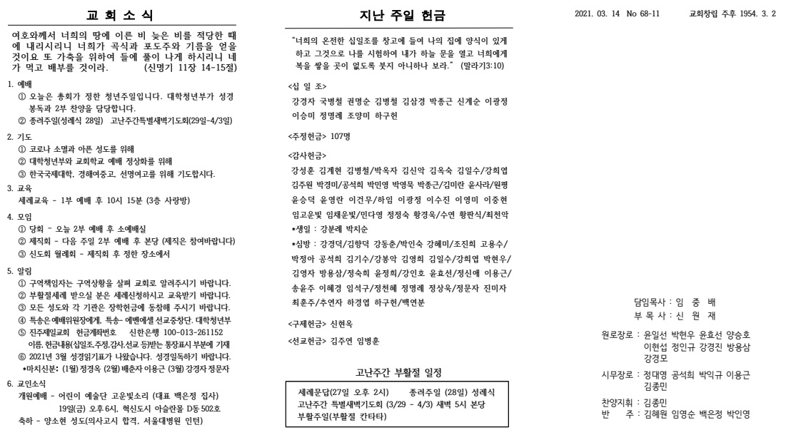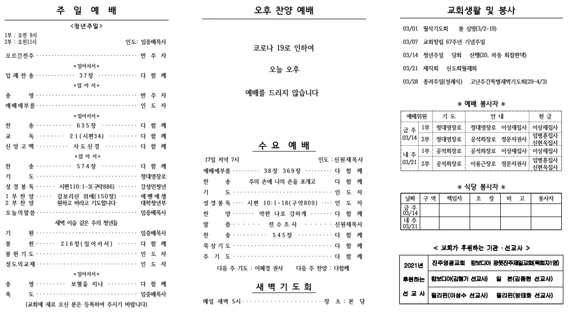 2021³â 03¿ù 07ÀÏ (±³È¸Ã¢¸³±â³äÁÖÀÏ) ÁÖº¸