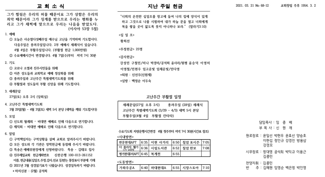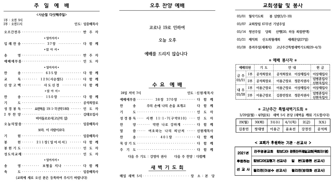 2021³â 03¿ù 07ÀÏ (±³È¸Ã¢¸³±â³äÁÖÀÏ) ÁÖº¸