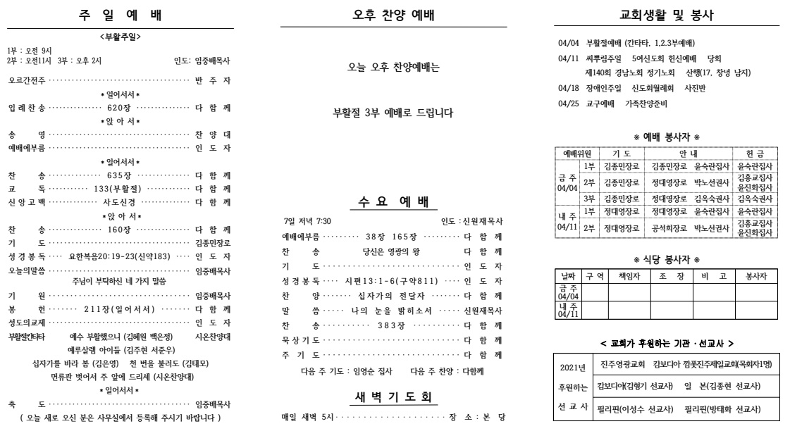 2021³â 03¿ù 07ÀÏ (±³È¸Ã¢¸³±â³äÁÖÀÏ) ÁÖº¸