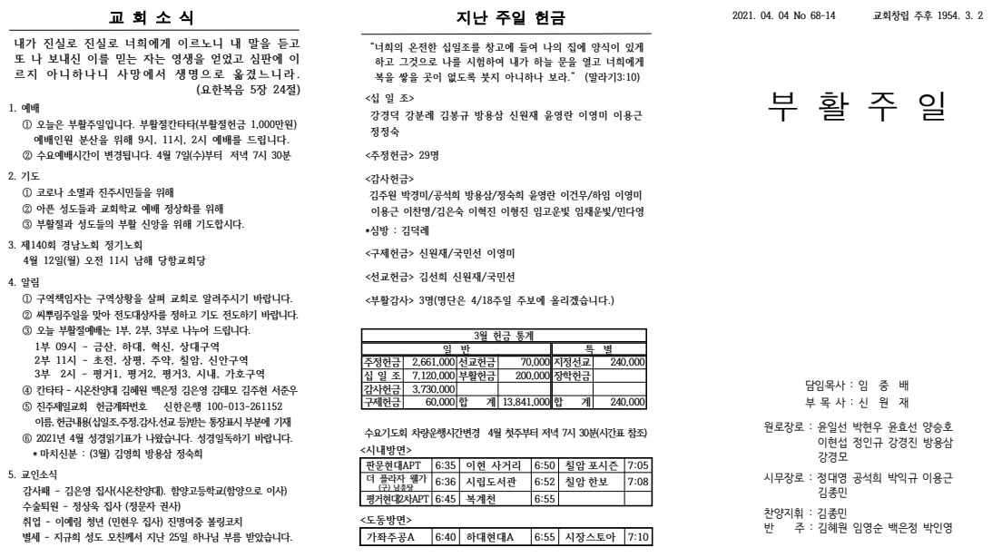 2021³â 04¿ù 04ÀÏ (ºÎȰÁÖÀÏ) ÁÖº¸