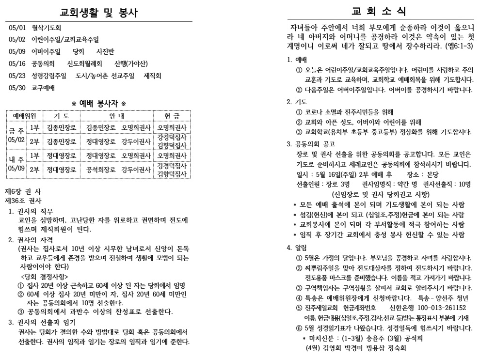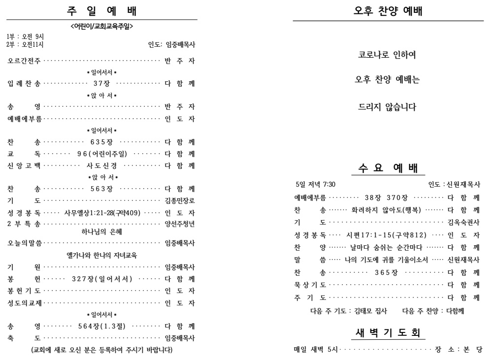 2021³â 05¿ù 02ÀÏ (¾î¸°ÀÌ/±³È¸±³À°ÁÖÀÏ) ÁÖº¸