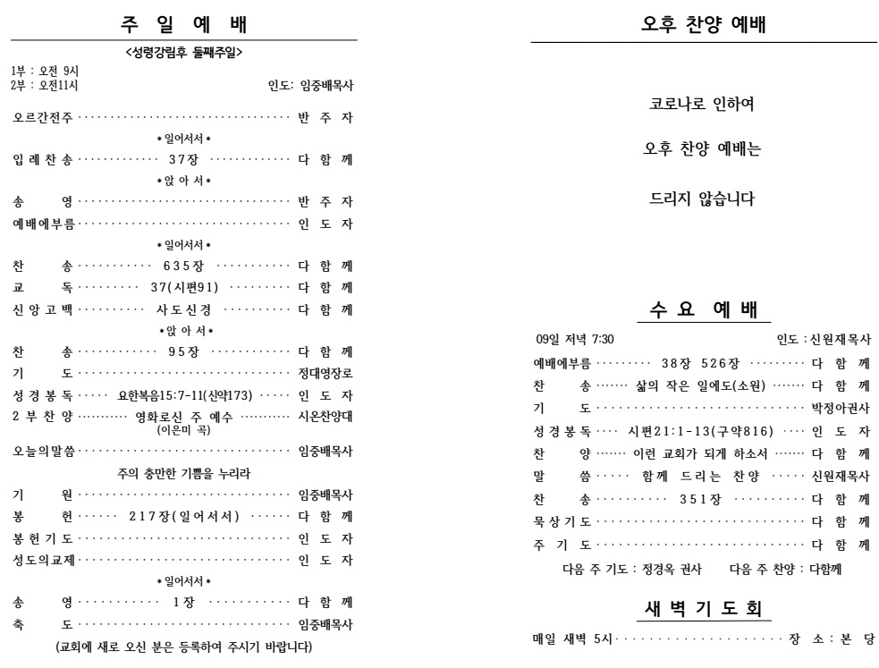 2021³â 05¿ù 02ÀÏ (¾î¸°ÀÌ/±³È¸±³À°ÁÖÀÏ) ÁÖº¸