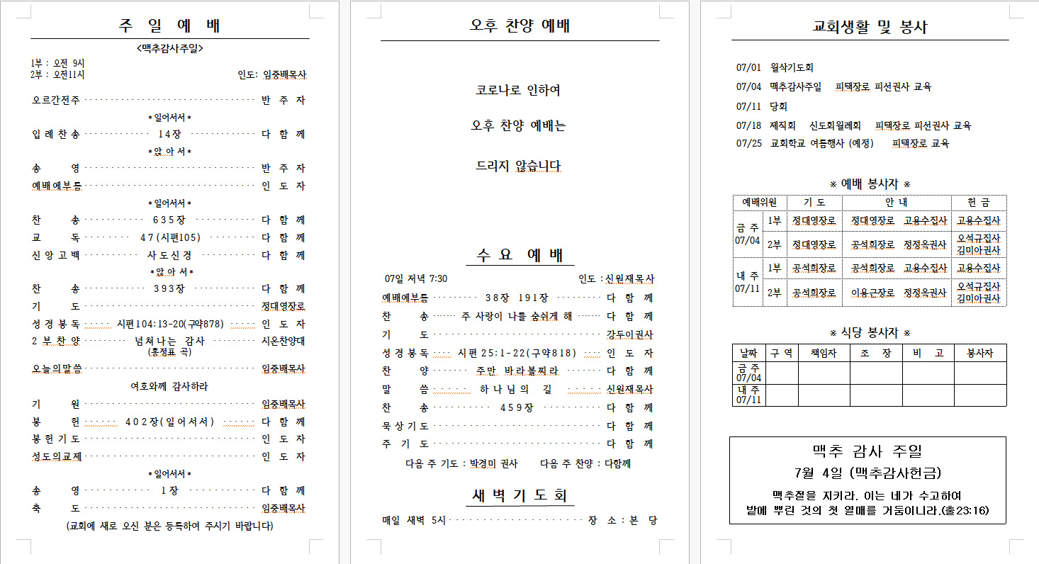 2021³â 07¿ù 04ÀÏ (¸ÆÃß°¨»çÁÖÀÏ) ÁÖº¸
