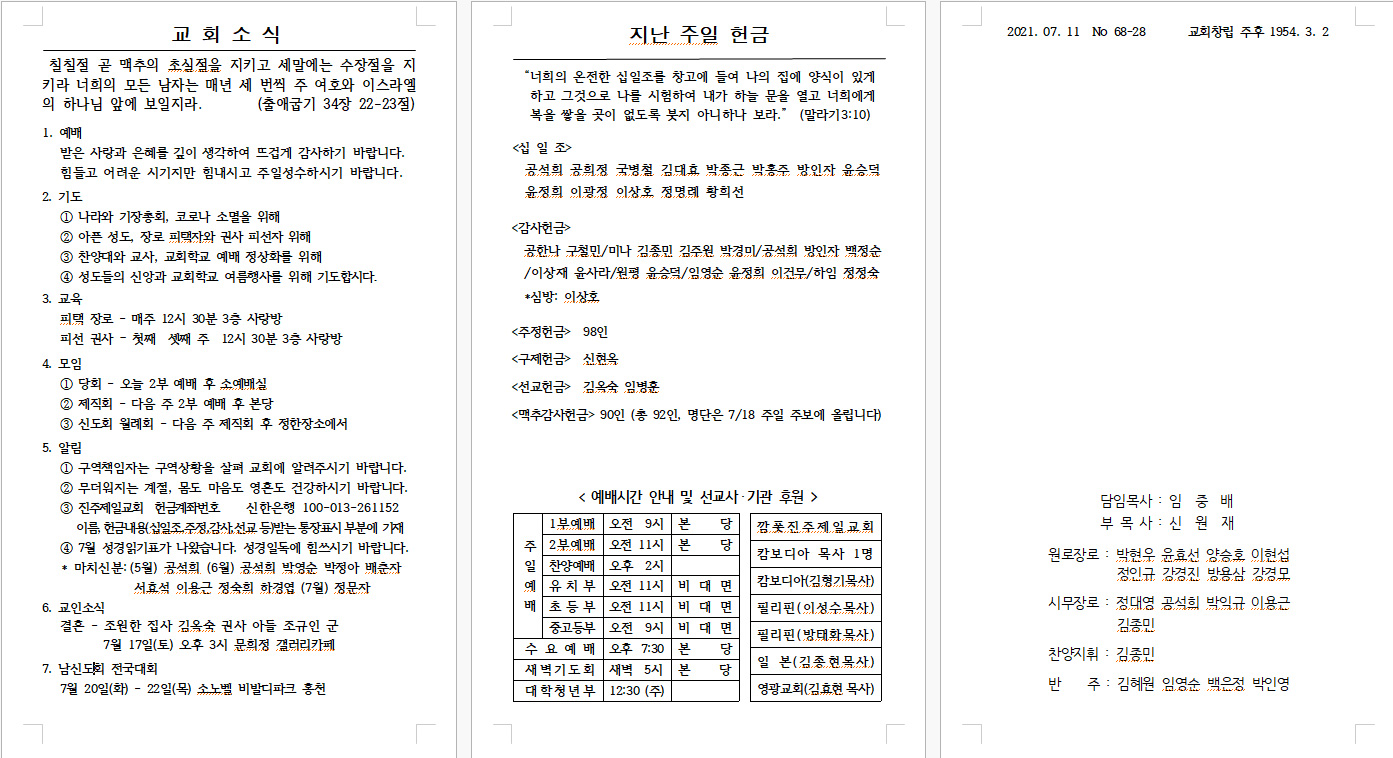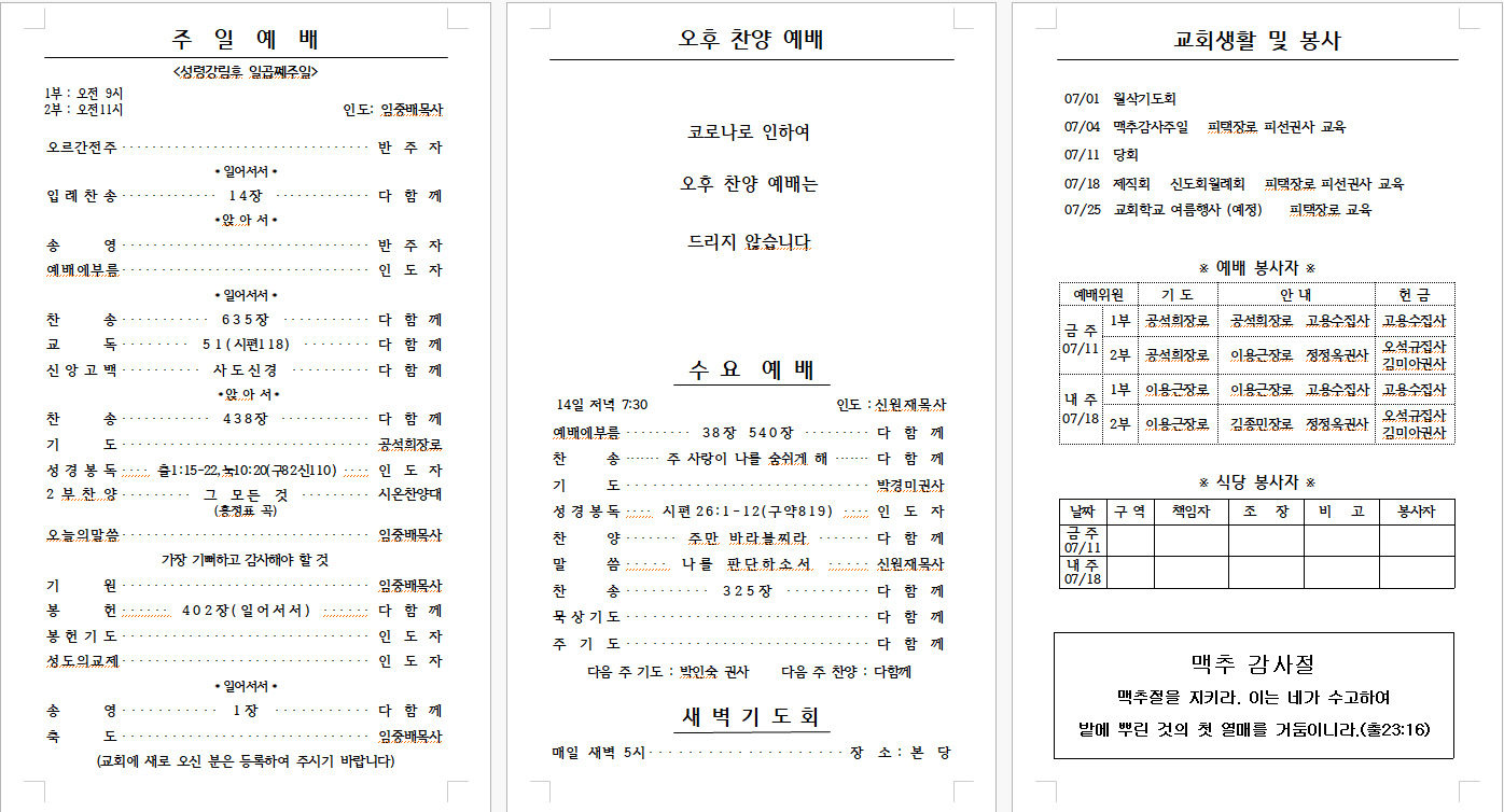 2021³â 07¿ù 04ÀÏ (¸ÆÃß°¨»çÁÖÀÏ) ÁÖº¸