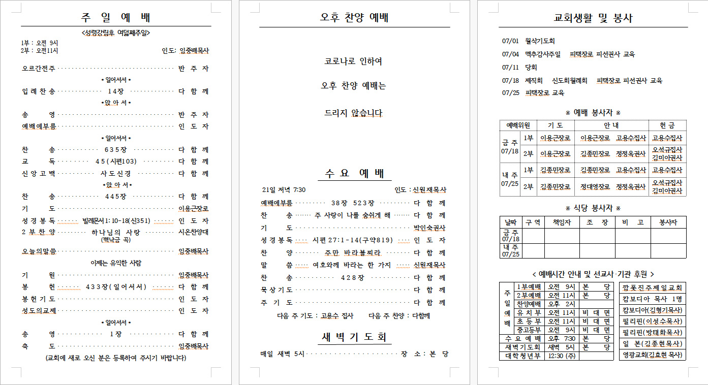 2021³â 07¿ù 25ÀÏ (¼º·É°¸²ÈÄ ¾ÆÈ©Â°ÁÖÀÏ) ÁÖº¸