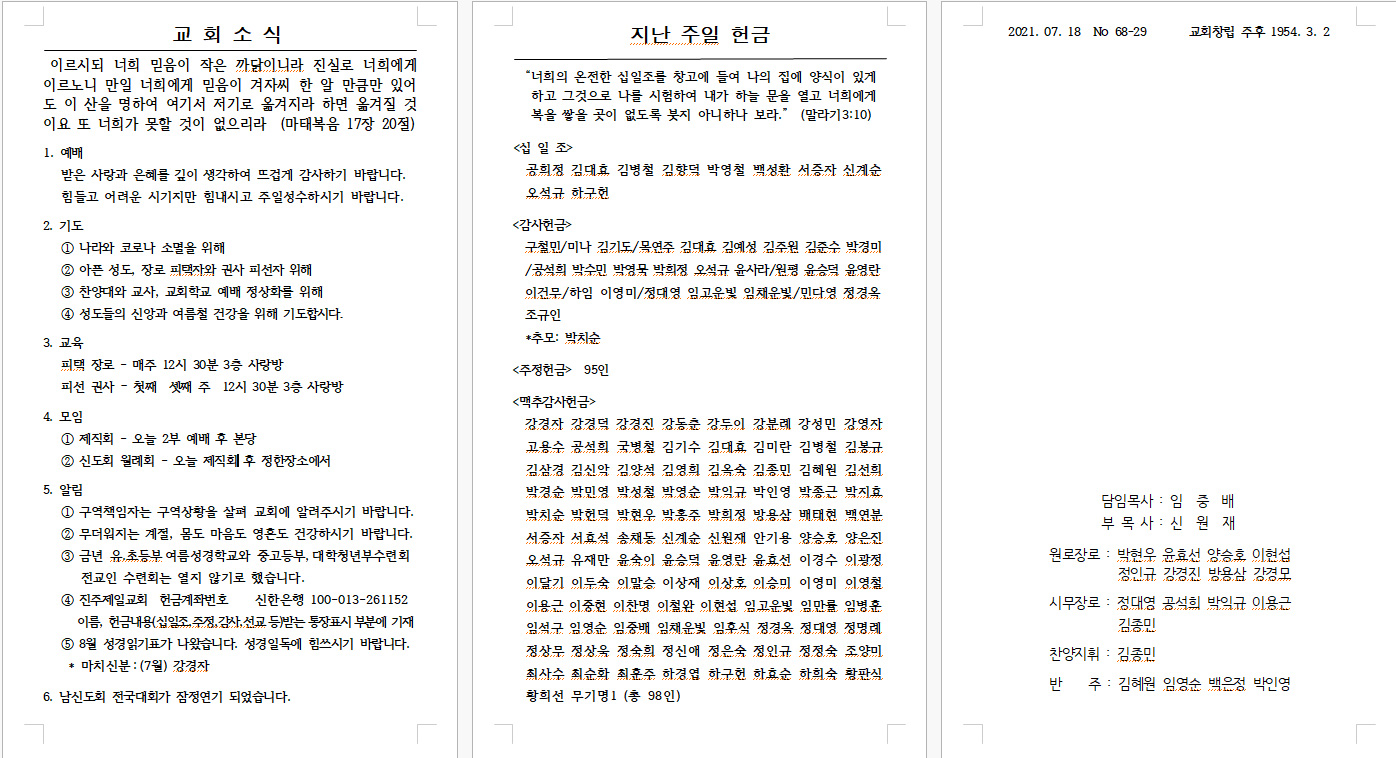 2021³â 07¿ù 04ÀÏ (¸ÆÃß°¨»çÁÖÀÏ) ÁÖº¸