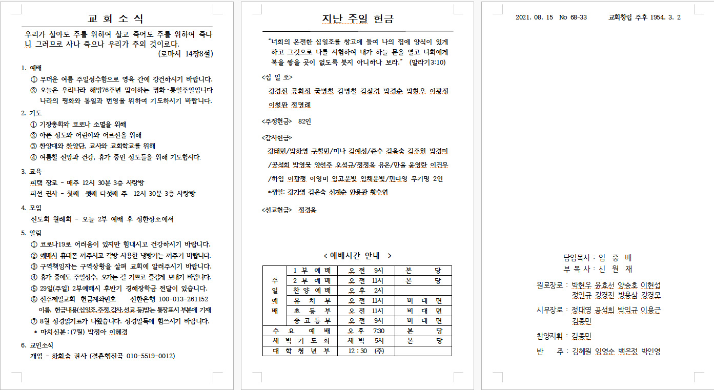 2021³â 08¿ù 15ÀÏ (ÆòÈÅëÀÏÁÖÀÏ) ÁÖº¸