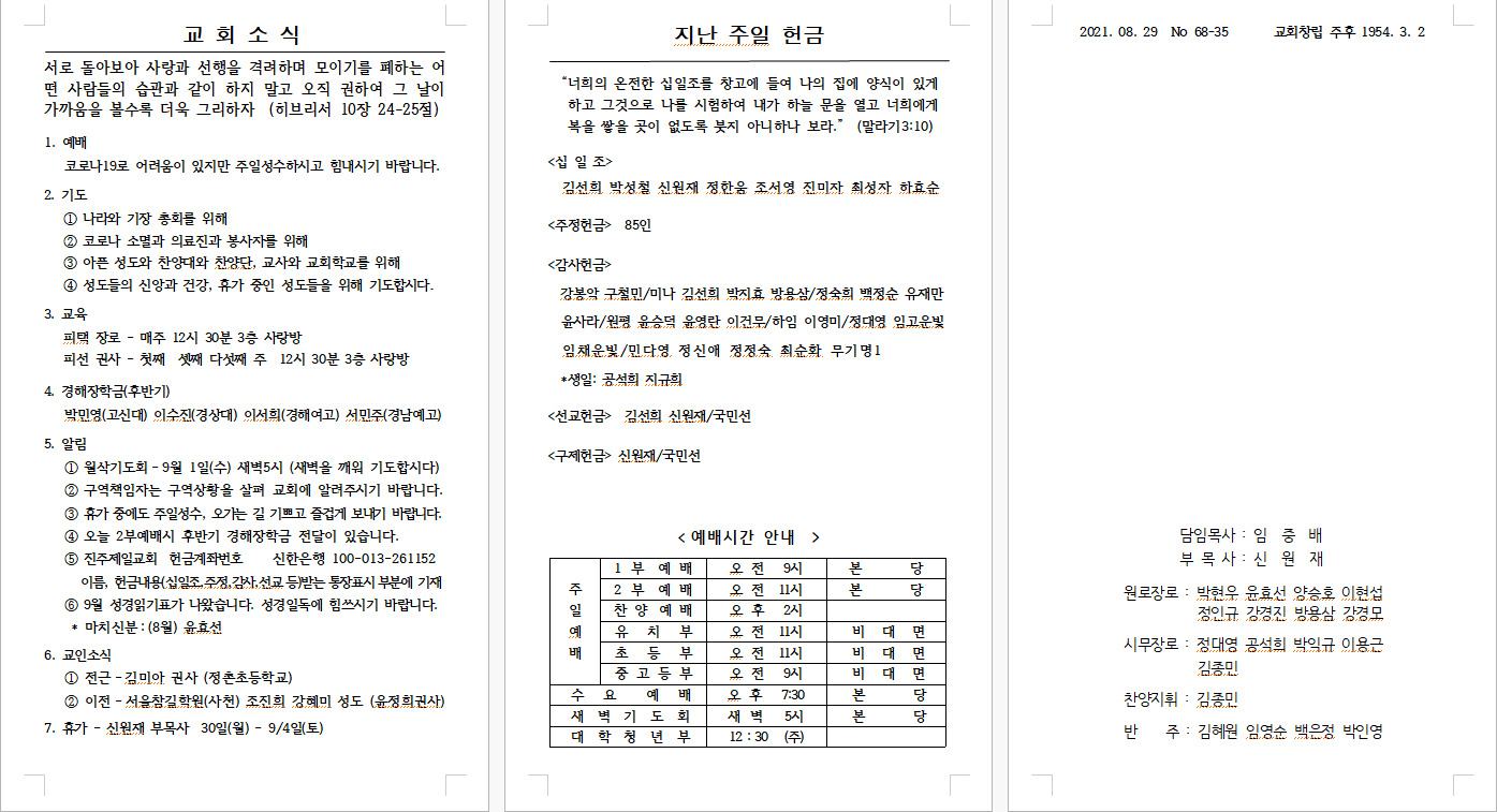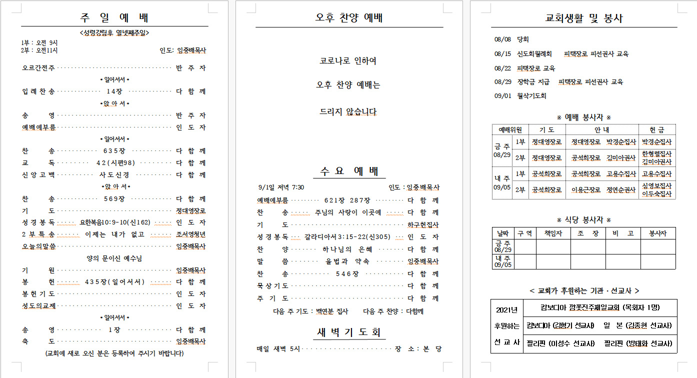 2021³â 08¿ù 15ÀÏ (ÆòÈÅëÀÏÁÖÀÏ) ÁÖº¸