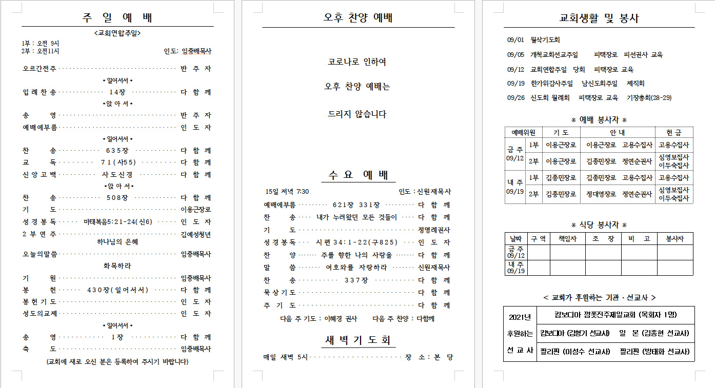 2021³â 09¿ù 12ÀÏ (±³È¸¿¬ÇÕÁÖÀÏ) ÁÖº¸