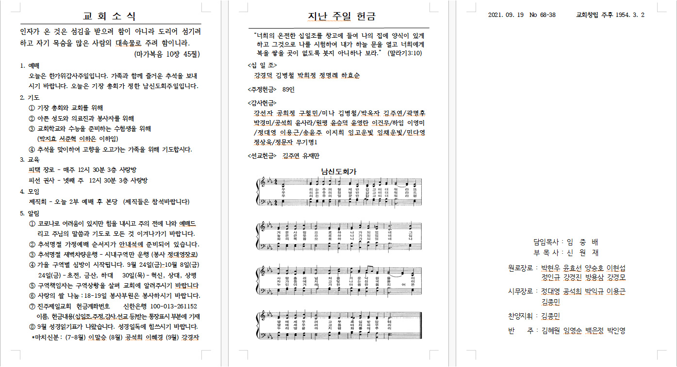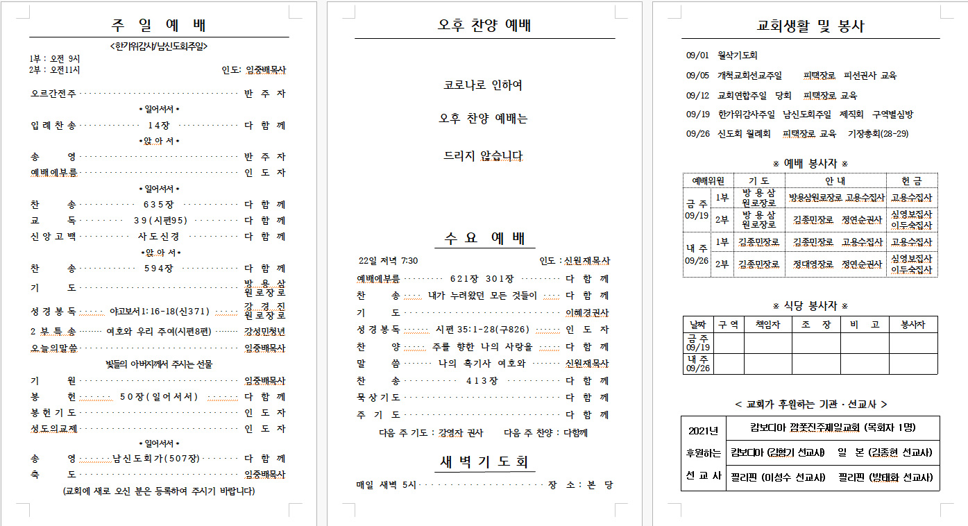 2021³â 09¿ù 12ÀÏ (±³È¸¿¬ÇÕÁÖÀÏ) ÁÖº¸