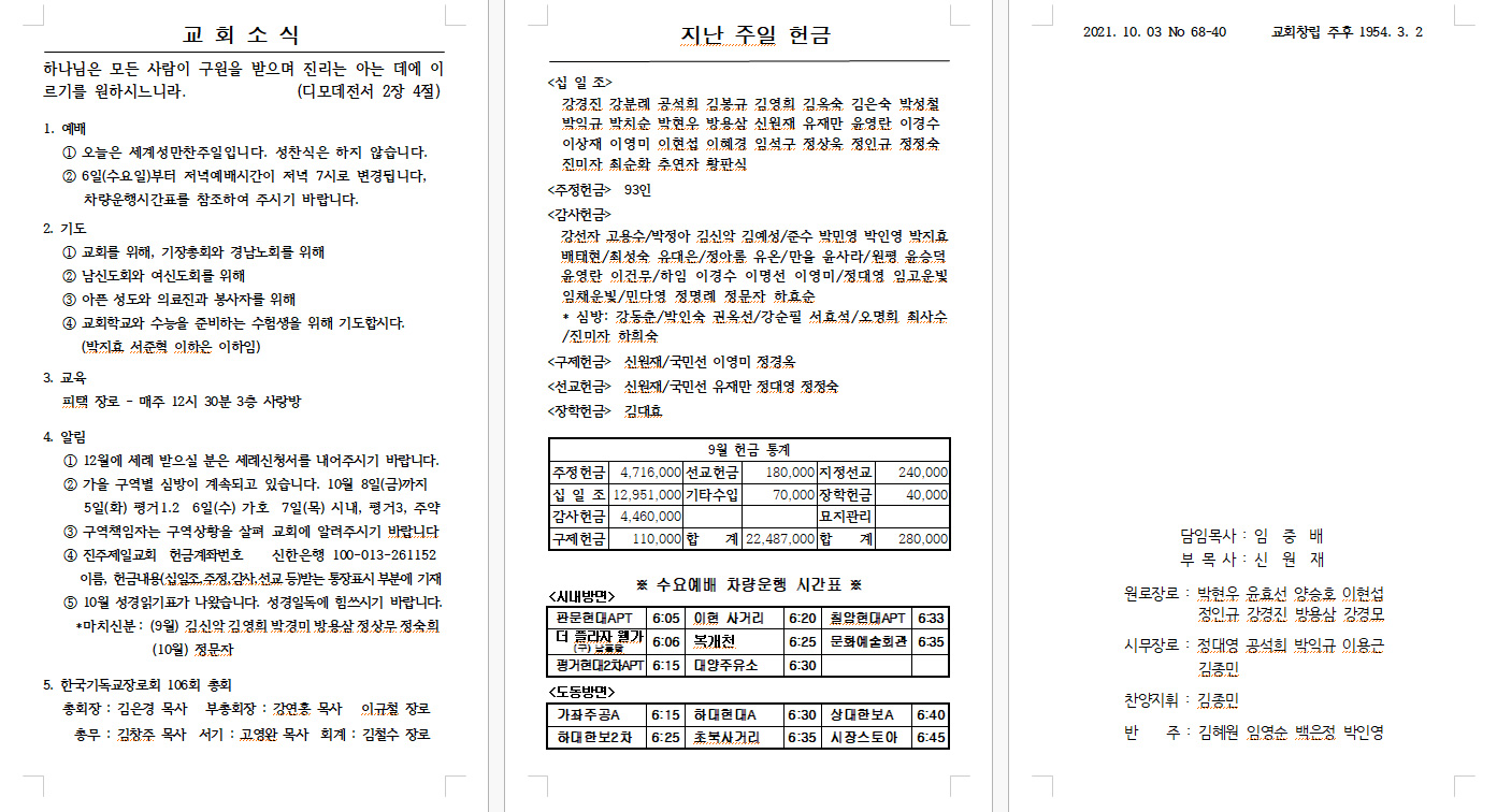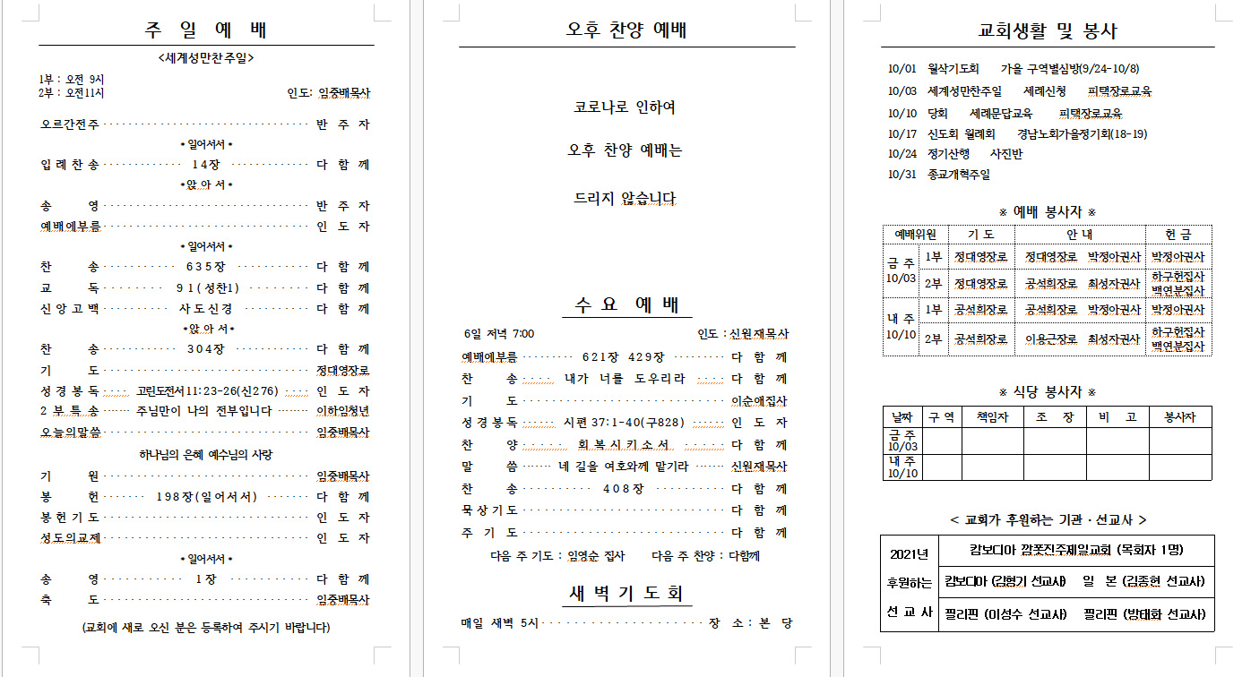 2021³â 09¿ù 12ÀÏ (±³È¸¿¬ÇÕÁÖÀÏ) ÁÖº¸