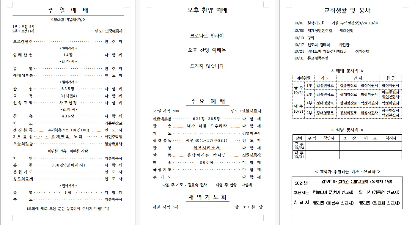 2021³â 10¿ù 17ÀÏ (âÁ¶Àý Àϰö°ÁÖÀÏ) ÁÖº¸