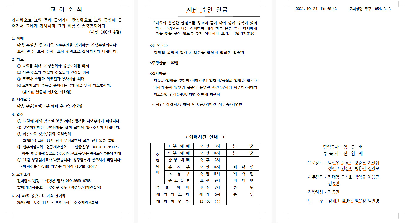 2021³â 10¿ù 31ÀÏ (Á¾±³°³ÇõÁÖÀÏ) ÁÖº¸