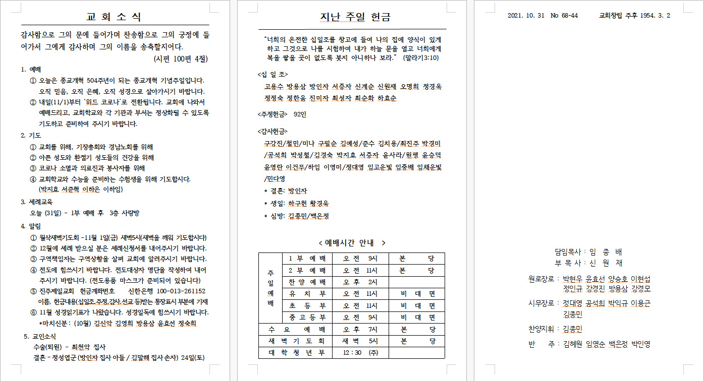 2021³â 10¿ù 31ÀÏ (Á¾±³°³ÇõÁÖÀÏ) ÁÖº¸