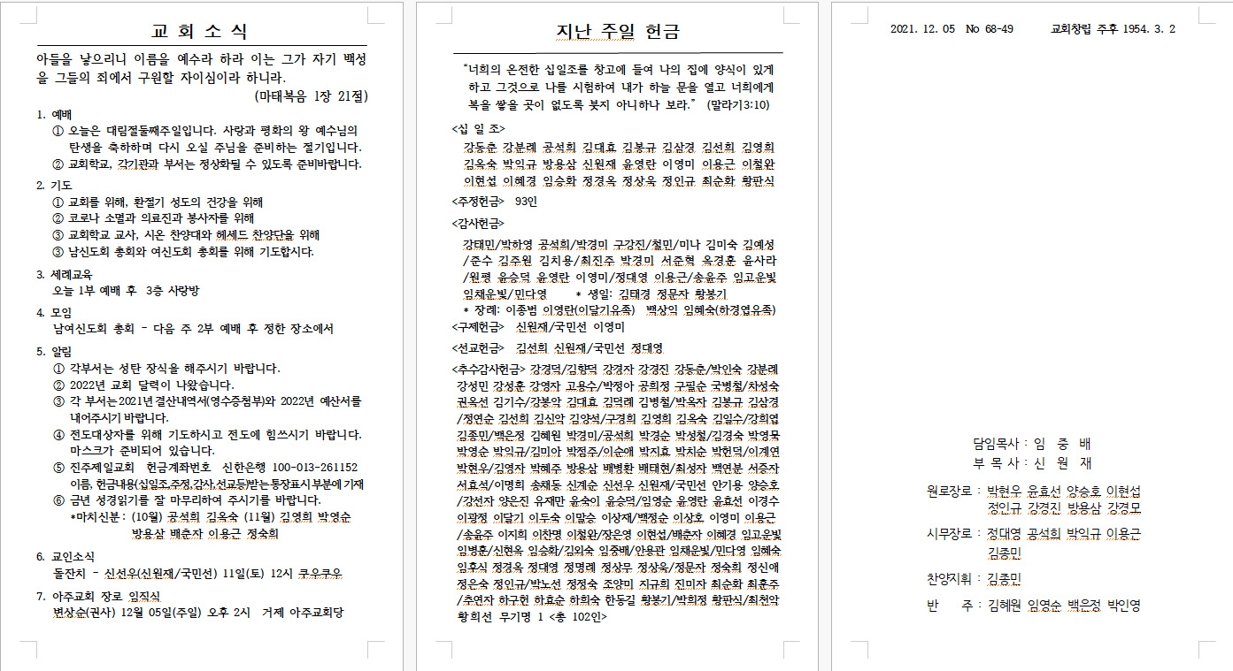 2021³â 12¿ù 12ÀÏ (¼º¼ÁÖÀÏ/ÀαÇÁÖÀÏ) ÁÖº¸