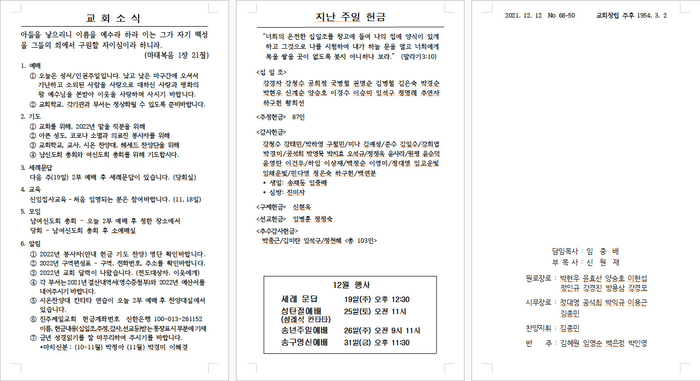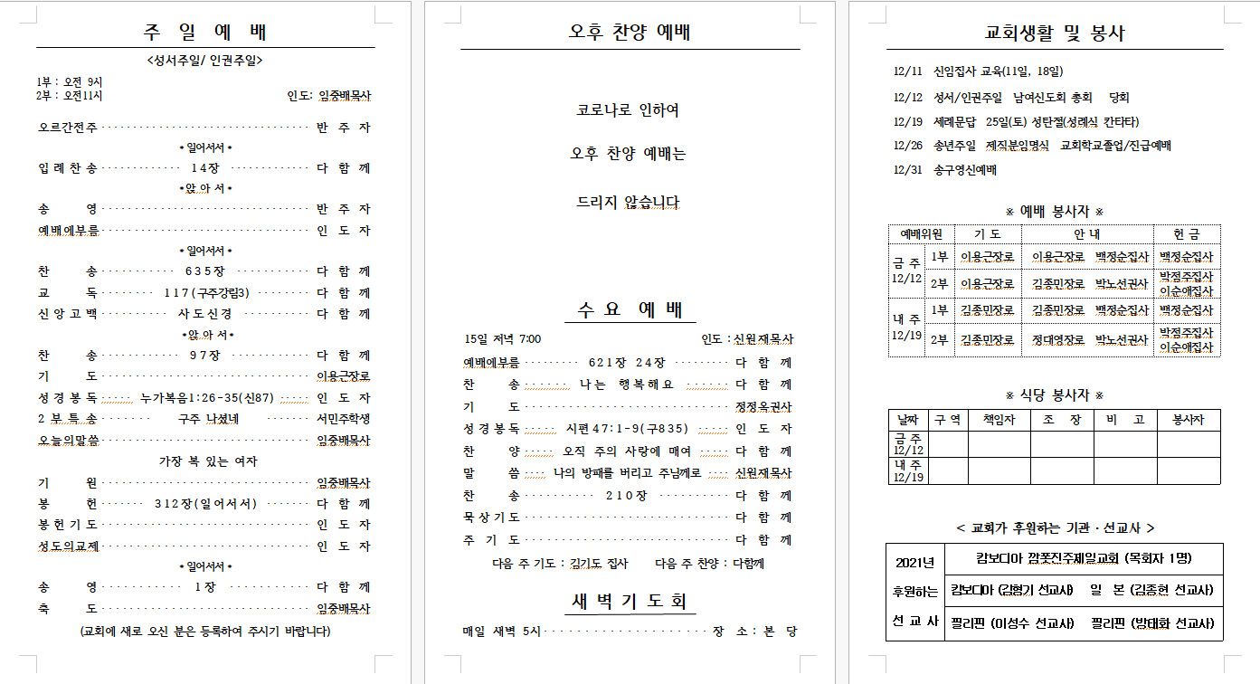 2021³â 12¿ù 12ÀÏ (¼º¼ÁÖÀÏ/ÀαÇÁÖÀÏ) ÁÖº¸