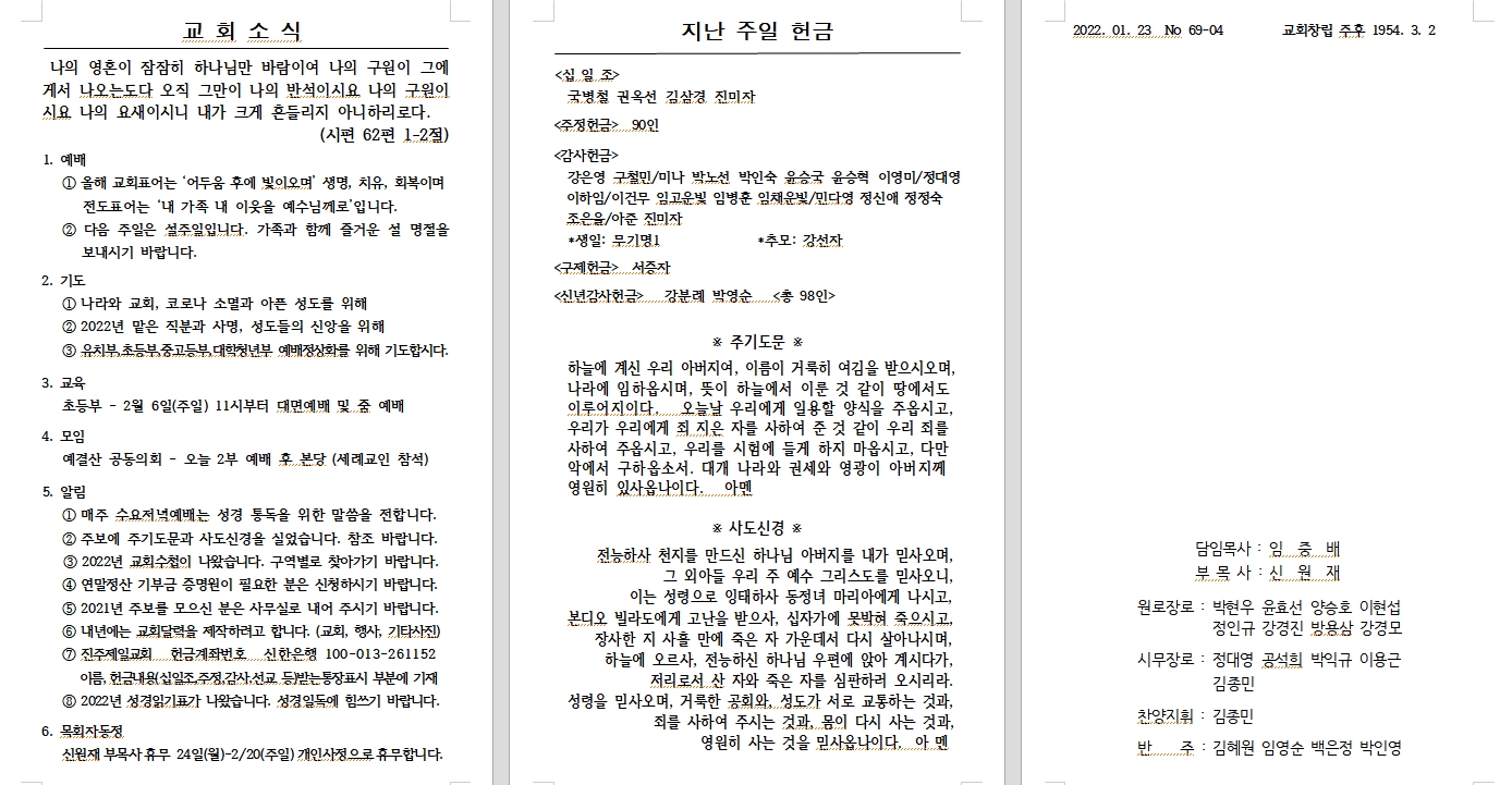 2022³â 01¿ù 16ÀÏ (¿©½ÅµµÈ¸ÁÖÀÏ) ÁÖº¸