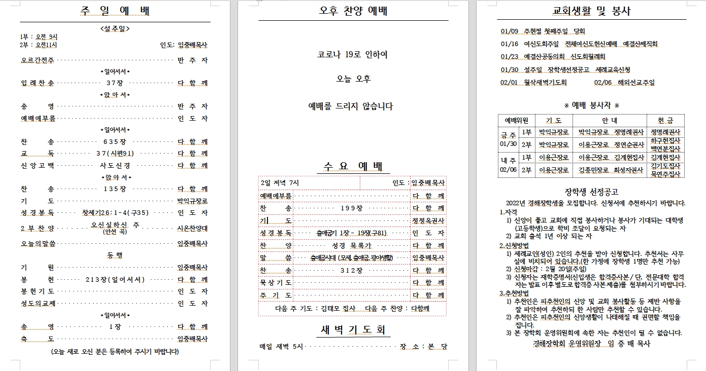2022³â 03¿ù 06ÀÏ (±³È¸Ã¢¸³ ±â³äÁÖÀÏ) ÁÖº¸