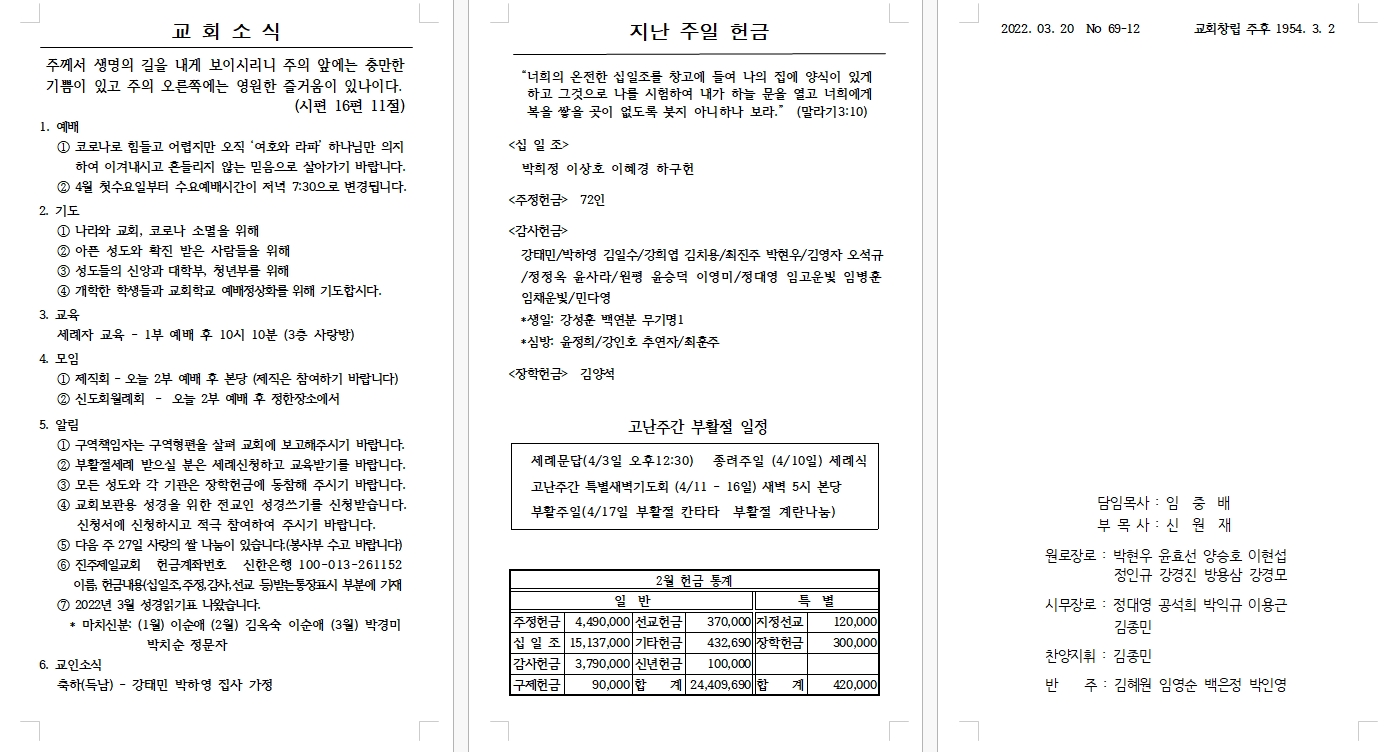 2022³â 03¿ù 06ÀÏ (±³È¸Ã¢¸³ ±â³äÁÖÀÏ) ÁÖº¸