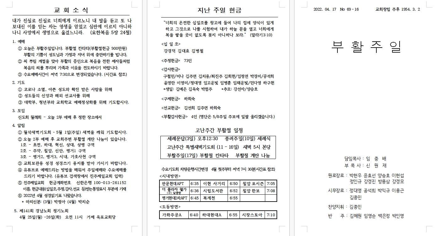 2022³â 04¿ù 17ÀÏ (ºÎȰÁÖÀÏ) ÁÖº¸